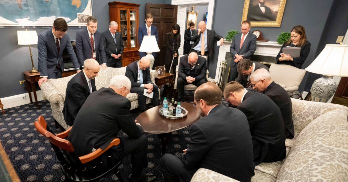 That’s exactly what Vice-President Mike Pence decided to do. An official White House photo from February 26 captured the Vice-President and the Coronavirus Task Force opening their meeting with heads bowed in prayer. The photo, as they say nowadays, blew up the Internet, unleashing a tidal wave of “prayer shaming,” a term coined a couple of years ago to describe ridiculing people who dare offer their “thoughts and prayers” for the victims of tragedies like mass shootings.