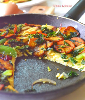 Plantain and Eggs combo is a popular one in Nigerian cuisine and it quite nutritionally balanced. Its a quick meal to fix and very appropriate to have for breakfast, lunch or dinner.