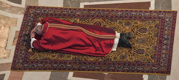 From a canopied platform on the Palatine Hill, Francis watched the traditional Via Crucis (Way of the Cross) torchlit night-time procession at the Colosseum in Rome, which solemnly recalls the crucifixion of Jesus.