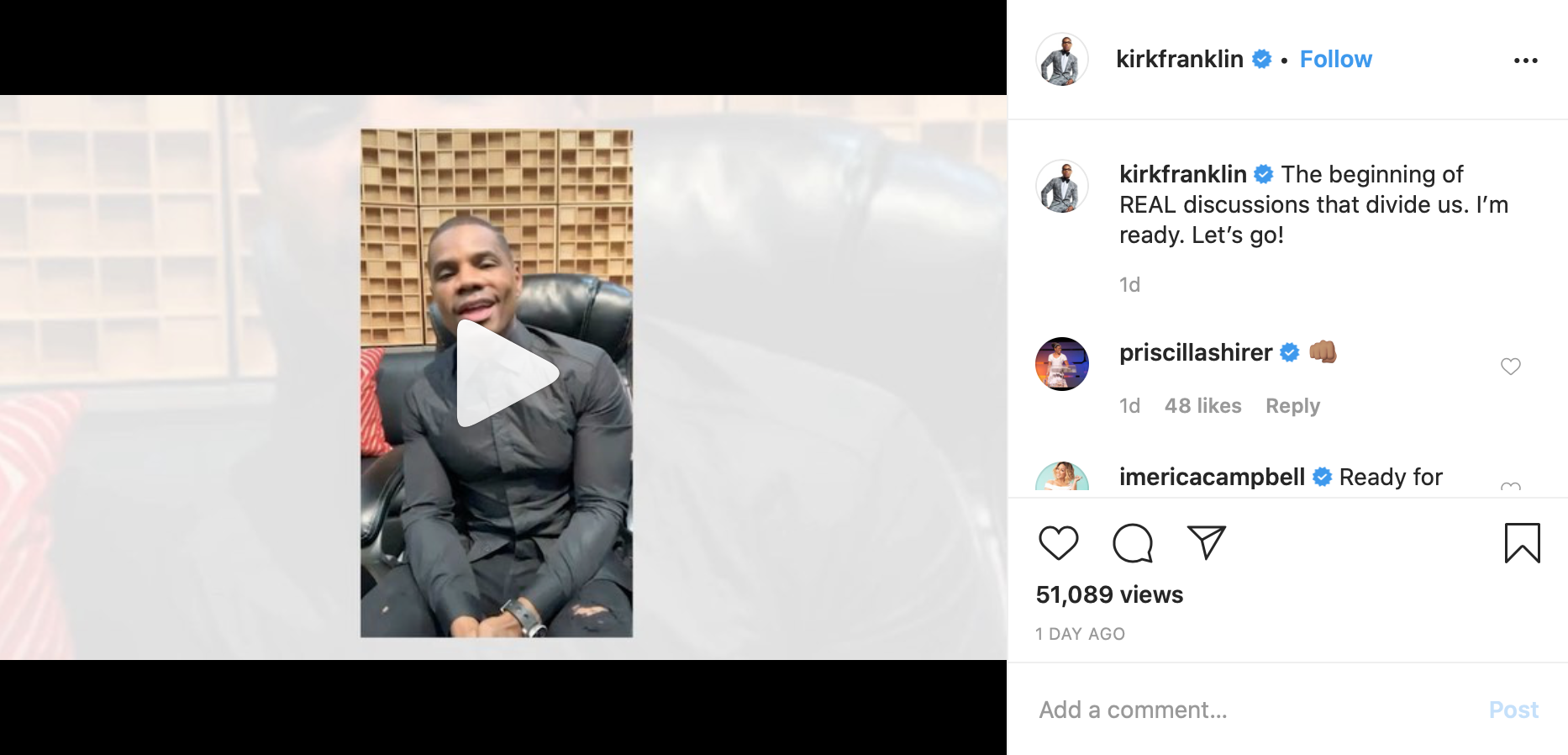 Earlier this week, Franklin posted another video announcing “a conversation…that was long overdue” about race and the church. The clip showed TBN president Matt Crouch, Pastor Tony Evans of Oak Cliff Bible Fellowship and Pastor Robert Morris of Gateway Church in Dallas with Franklin.